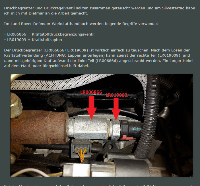 FIGURE 2 LR006866 Pressure Limiter Valve Fitting on Common Rail LR006865 Land Rover